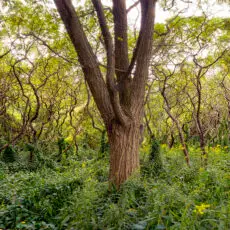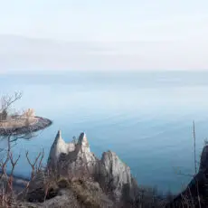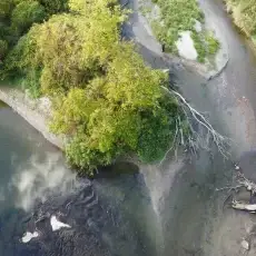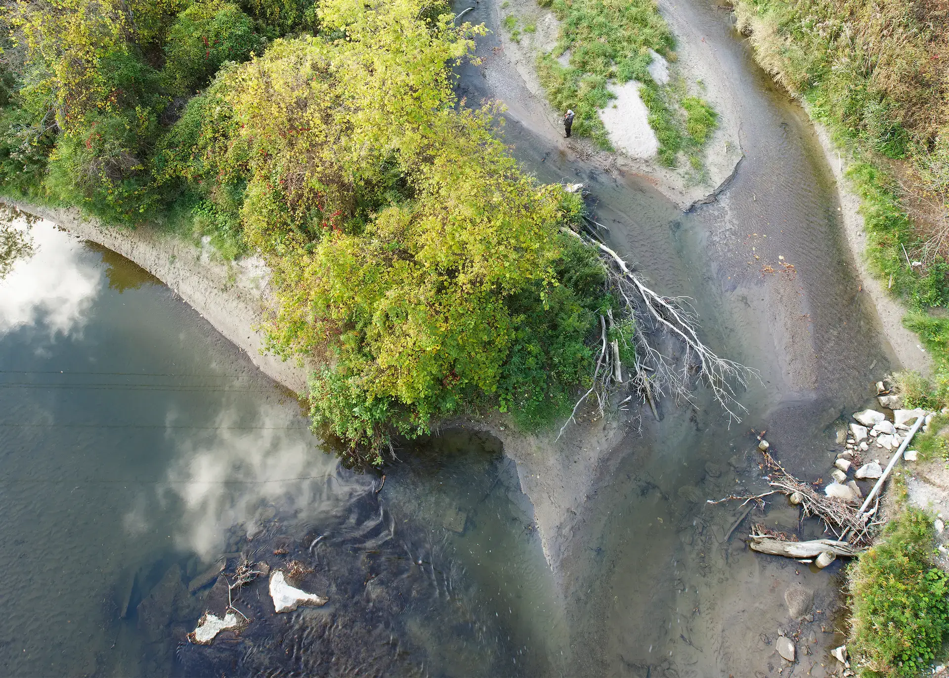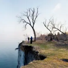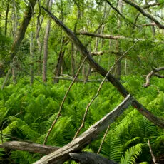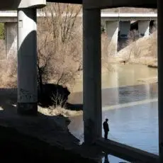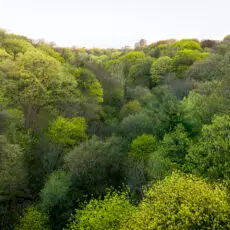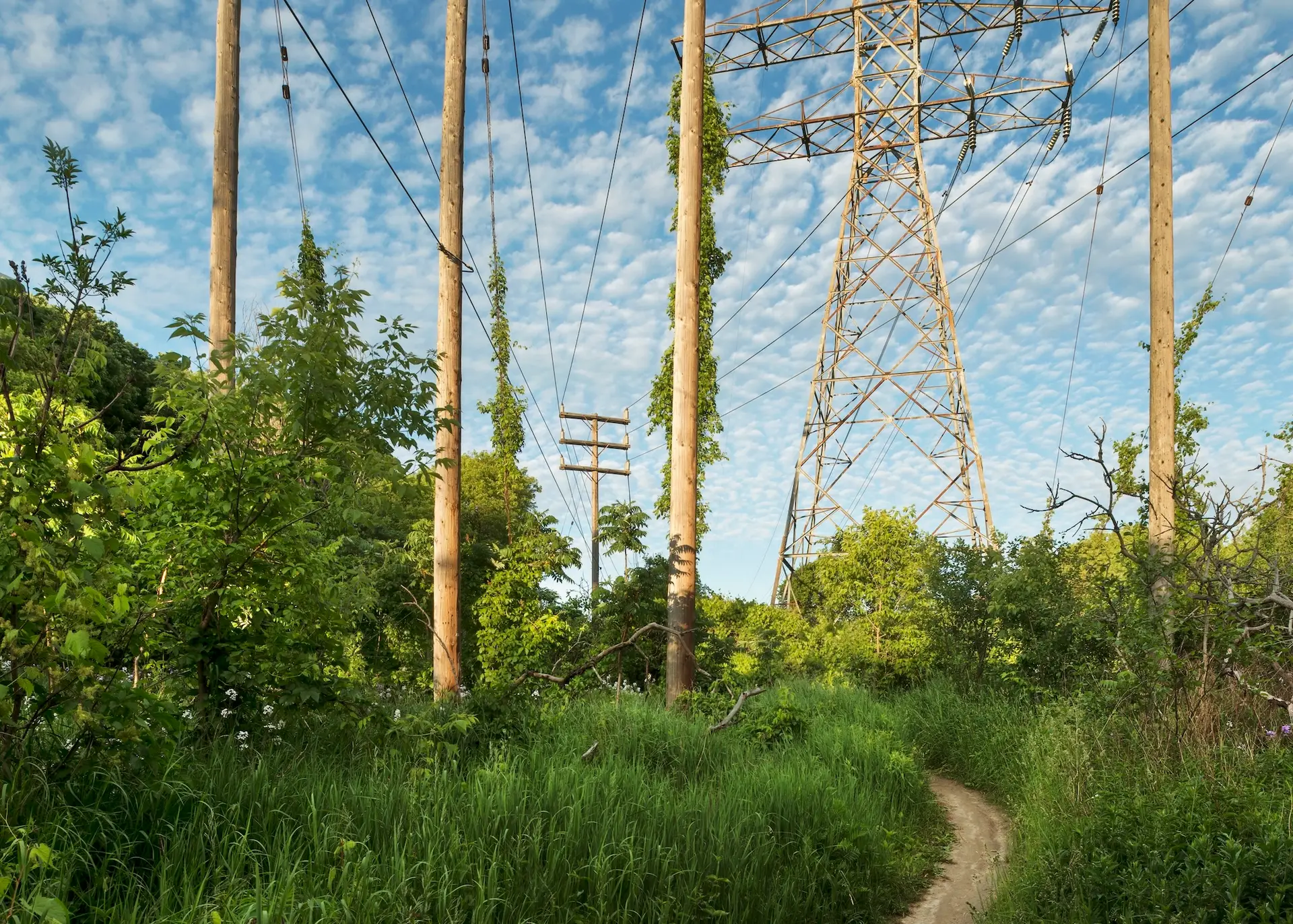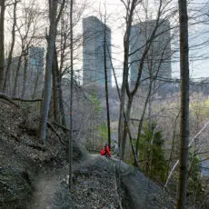 I look through my camera down into the Don River Valley. I’m standing on the north sidewalk of the Prince Edward Viaduct — more popularly known as the Bloor Viaduct — a bridge built between 1915 and 1918 to span the valley and connect Toronto’s east neighbourhoods to its downtown core. The traffic on the bridge is urban and frenetic; the valley floor, caught on my viewfinder fifty metres below, is natural and idyllic. I’m physically fixed in the city proper, but my mind is lost in the primal ravine, a lush green expanse with its own complex system of creeks and rivers extending for miles into the city in all directions. I’m standing in a spot I ought to know well: it’s less than a ten-minute walk from my home and on a thoroughfare I cross and re-cross at least twice a day. Travelling “up here” my movement is constrained, like a chess piece, by the urban grid. “Down there” the travel restrictions are fewer, and more mysterious: I can wander, amble, meander, and explore. Excerpt from Robert Burley’s Essay, Enduring Wilderness, 2017